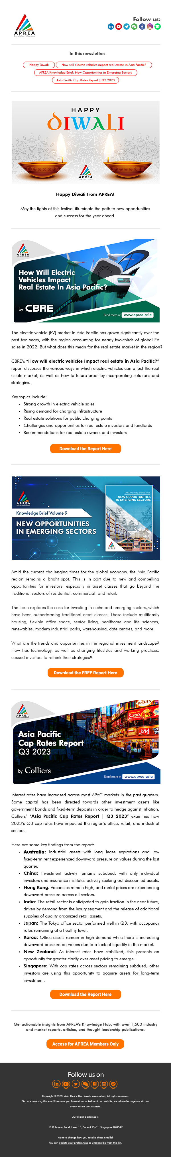 πŸͺ” Happy Diwali from APREA πŸš— Impact of Electric Vehicles in Real Estate πŸš€ New Opportunities, Emerging Sectors 🌏 APAC Cap Rates Report