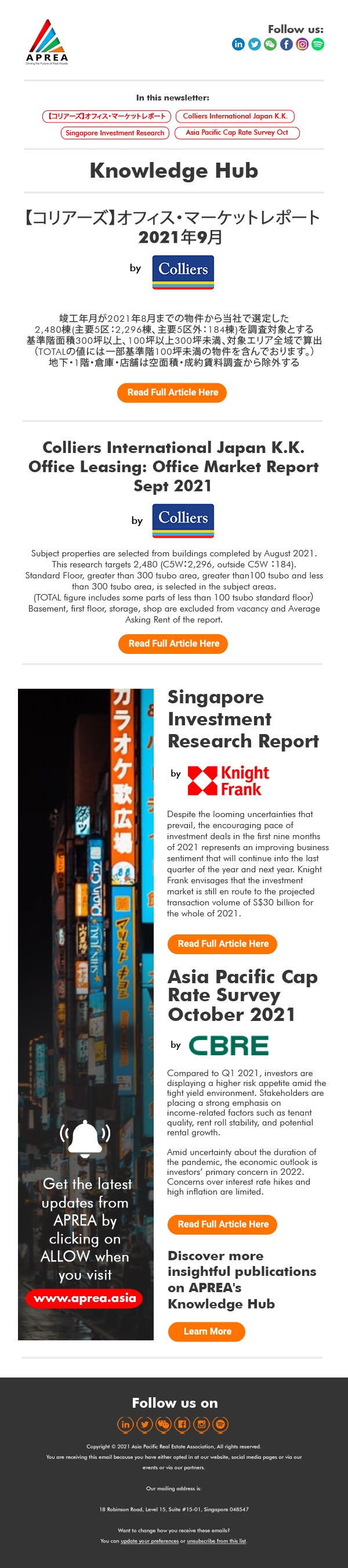 コリアーズ】オフィス・マーケットレポート 2021年9月