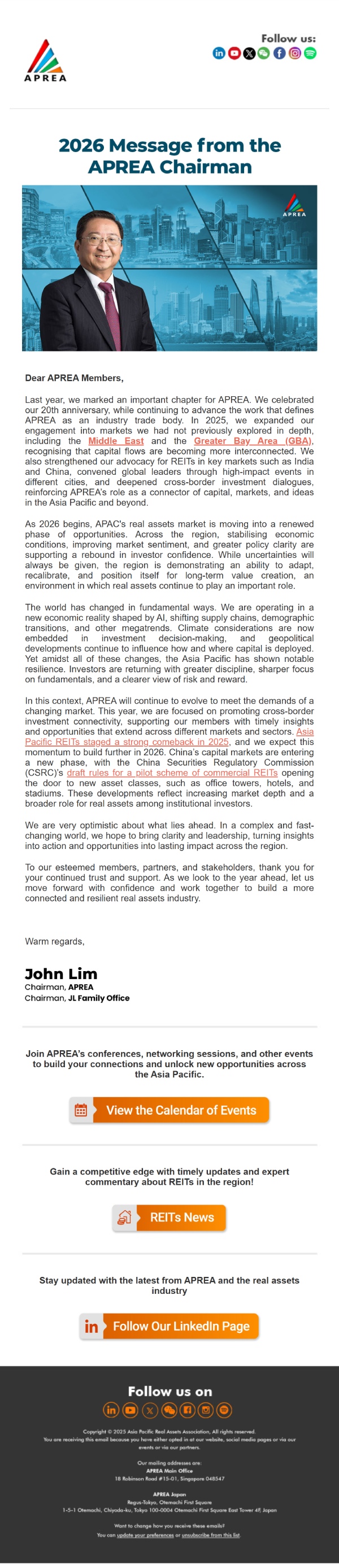 2026 Message from the APREA Chairman