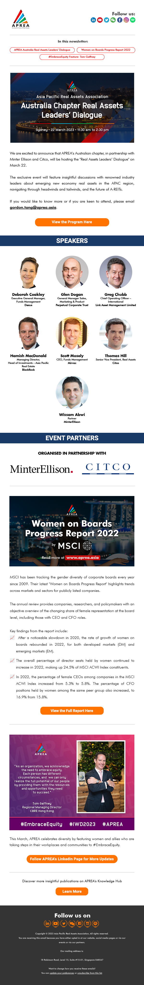 APREA Australia Real Assets Leaders’ Dialogue · Women on Boards Progress Report 2022 (MSCI)
