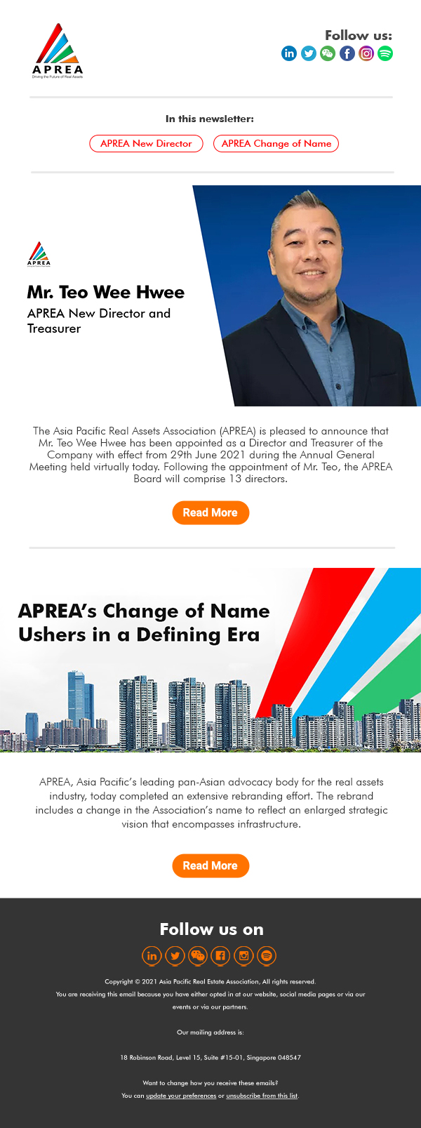 APREA New Director and Treasurer: Mr. Teo Wee Hwee