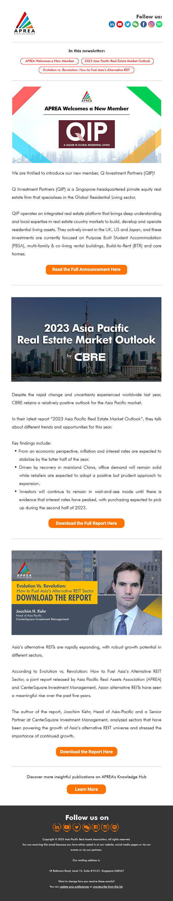 APREA Welcomes a New Member ⦾ 2023 Asia Pacific Real Estate Market Outlook ⦾ How to Fuel Asia’s Alternative REIT Sector