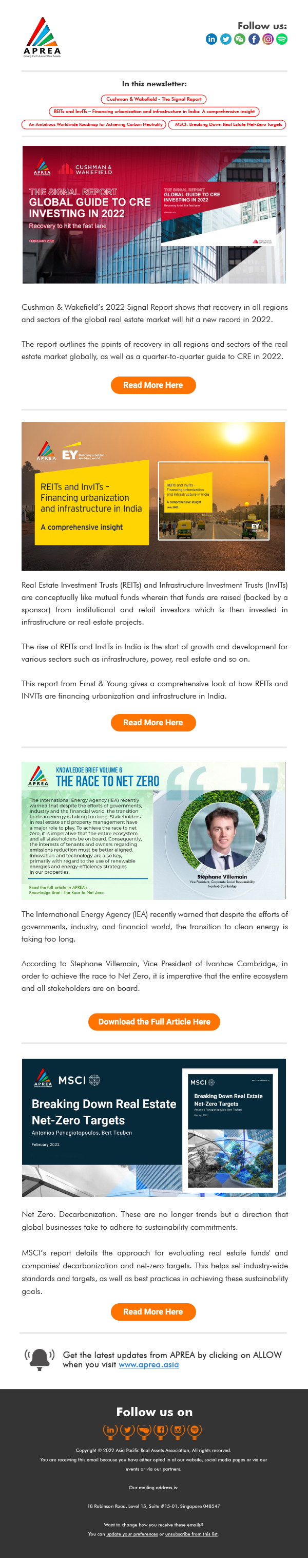 The Signal Report: Global Guide to CRE Investing · REITs & InvITs · Roadmap for Achieving Carbon Neutrality · Real Estate Net-Zero Targets