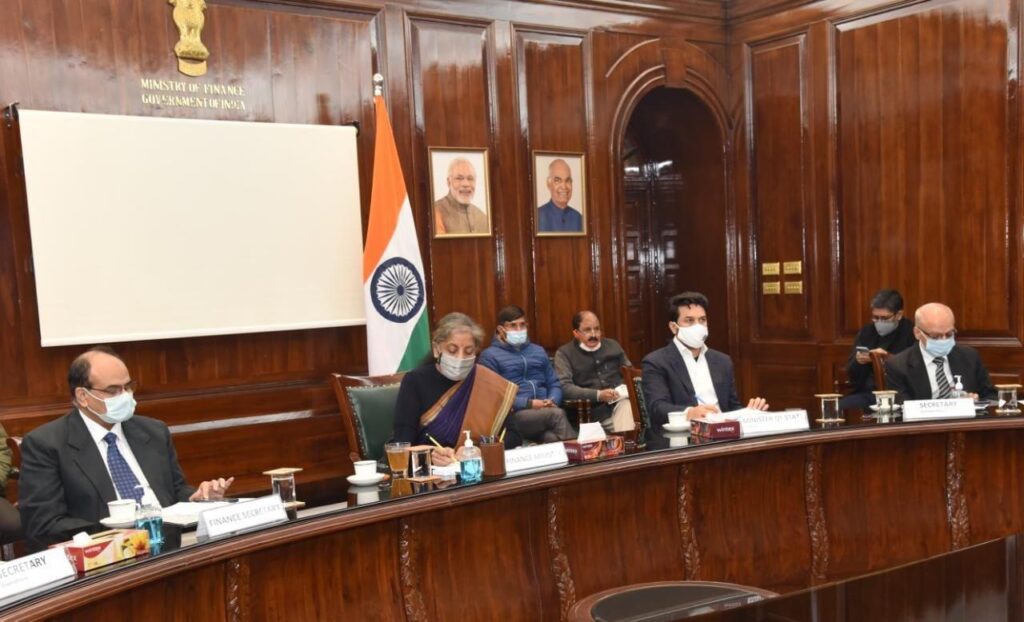 除了財政部長外,財政和公司事務國務部長阿努拉格·塔庫爾先生、財政部長阿布·潘迪博士、首席經濟顧問K·V·蘇布拉馬尼亞和經濟事務部秘書塔倫·巴賈傑先生以及其他高級官員也出席了會議。.